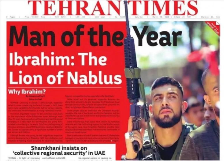 اختارت صحيفة "طهران تايمز" الإيرانية الشهيد إبراهيم النابلسي رجل العام تحت عنوان "إبراهيم، أسد نابلس".
