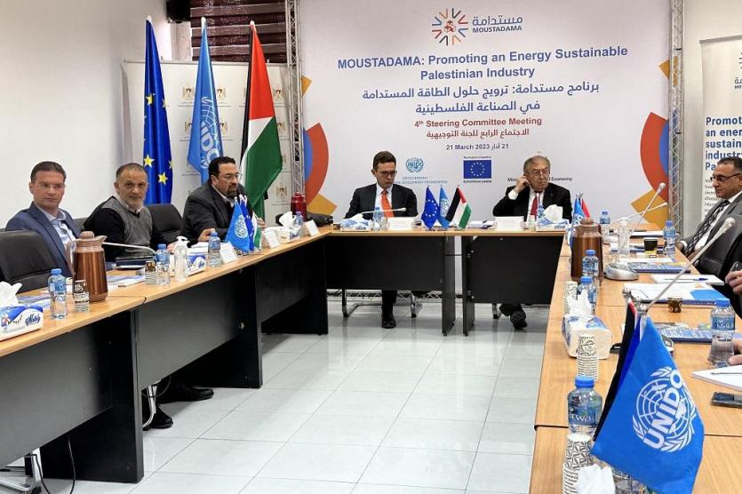 وترأس الاجتماع، وزير الاقتصاد الوطني خالد عسيلي، وبمشاركة أيمن إسماعيل، ممثلا عن رئيس سلطة الطاقة والموارد الطبيعية ظافر ملحم، ومدير وحدة التنمية الاقتصادية والمياه والطاقة والتجارة في مكتب الاتحاد الأوروبي في القدس تشارلز رودو دي تشاتيني، ومدير إدارة الطاقة في منظمة الأمم المتحدة للتنمية الصناعية "اليونيدو" طارق المطيرة، ورئيس مكتب برنامج "اليونيدو" في فلسطين أحمد الفرّا.