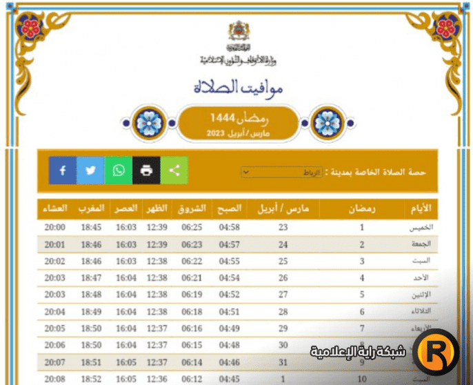 إمساكية رمضان في المغرب 2023 حصة الصلاة 1444
