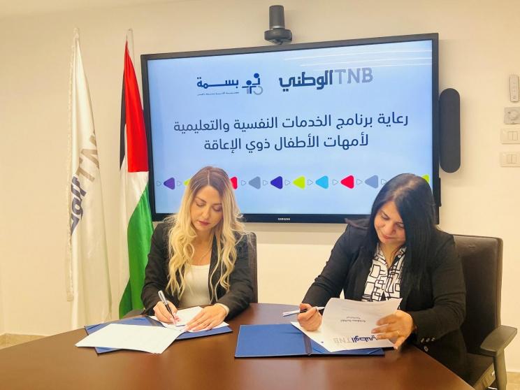 وقع البنك الوطني ومؤسسة الأميرة بسمة الخيرية بالقدس اتفاقية تعاون جديدة لتقديم الدعم النفسي والتثقيفي لأمهات الأطفال من ذوي الإعاقة ممن يتلقون العلاج في المؤسسة.