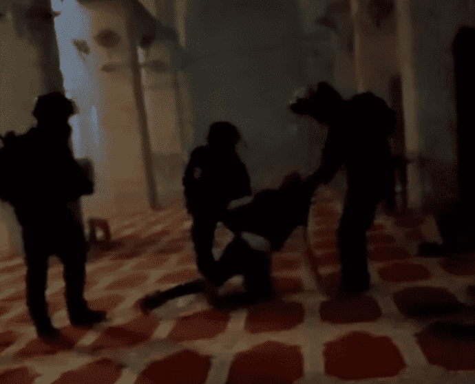 شاهد: إصابات باعتداء وحشي للاحتلال على المعتكفين في الأقصى