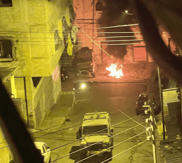 وكانت قوات الاحتلال قد اقتحمت مخيم العين غربي المدينة، ودارت اشتباكات مسلحة ومواجهات استهدف خلالها مقاومون دوريات الاحتلال بالرصاص والقنابل محلية الصنع، ما تسبب بإعطاب إحدى الآليات العسكرية وإصابة اثنين من جنود الاحتلال.
