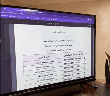 نتيجة قرعة الحج 2023 منتسبي وزارة التربية والتعليم الأردنية بعد إعلان الأسماء عبر اللجنة المكلفة من 4 أشخاص ومن خلال المبرمج أي أنها اعتمدت على قرعة الكترونية وذلك في البث المباشر.