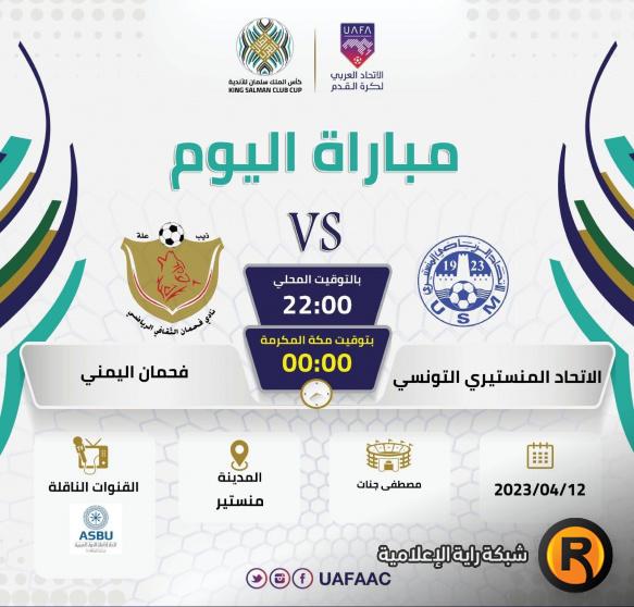 نتيجة مباراة الاتحاد المنستيري ضد فحمان اليمني في البطولة العربية