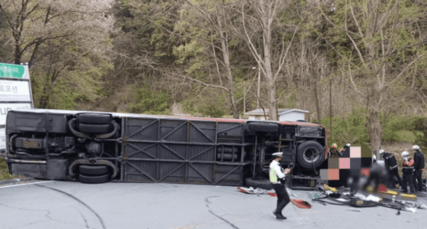 مصرع إسرائيلي وإصابة العشرات بانقلاب حافلة في كوريا الجنوبية