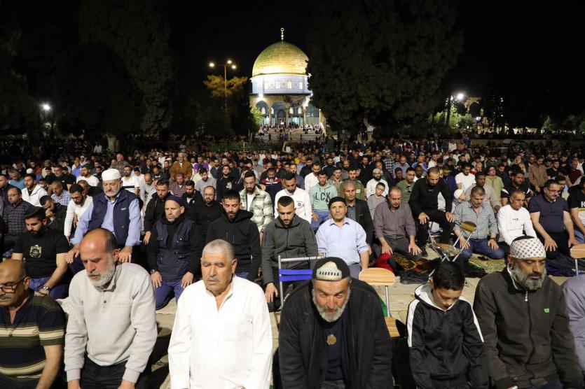 أدى 70 ألف مصلٍّ صلاتي العشاء والتراويح، اليوم الثلاثاء، في المسجد الأقصى المبارك، بمدينة القدس المحتلة.