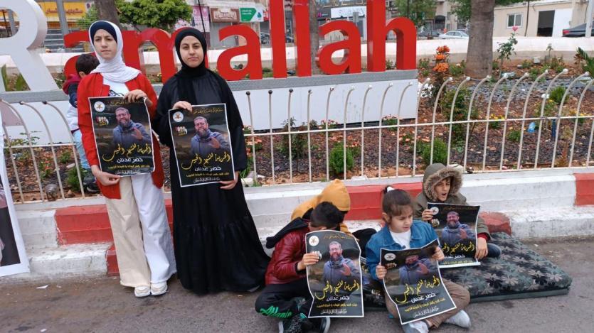عائلة الأسير خضر عدنان تشرع باعتصام مفتوح وسط رام الله