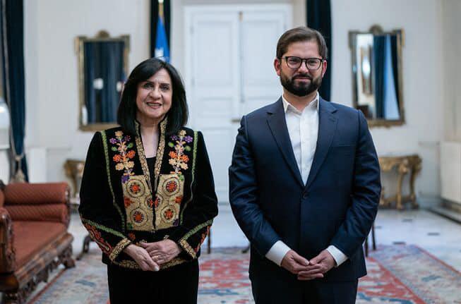 قدمت سفيرة فلسطين فيرا بابون، يوم الثلاثاء 25 نيسان/ ابريل 2023، أوراق اعتمادها إلى رئيس جمهورية تشيلسي جابرييل بوريش، كسفير فوق العادة لدولة فلسطين.