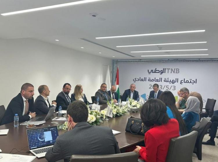 وجرى الاجتماع بحضور ممثل مراقب الشركات طارق ربايعة، وممثلة سلطة النقد الفلسطينية رجاء جبارين، وممثل هيئة سوق رأس المال الفلسطينية مراد الجدبة، وممثل شركة أرنست ويونغ عبد الكريم محمود، ورئيس مجلس إدارة البنك الوطني سمير زريق، ونائب رئيس مجلس الادارة عمر المصري وأعضاء مجلس الإدارة، كمال ابو خديجة، وايوب زعرب، ودينا المصري، ومنال زريق، والرئيس التنفيذي سلامة خليل، والمستشار القانوني للبنك م. موسى الكردي.
