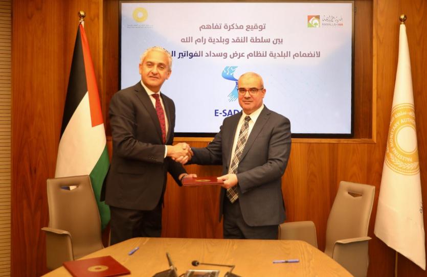 سلطة النقد توقع مذكرة تفاهم مع بلدية رام الله للانضمام لنظام E-SADAD