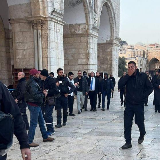 وقاد بن غفير اقتحام عشرات المستوطنين للمسجد الأقصى، من جهة باب المغاربة، بحماية مشددة من شرطة الاحتلال الإسرائيلي التي واصلت فرض تقييدات على دخول الفلسطينيين إلى الأقصى.