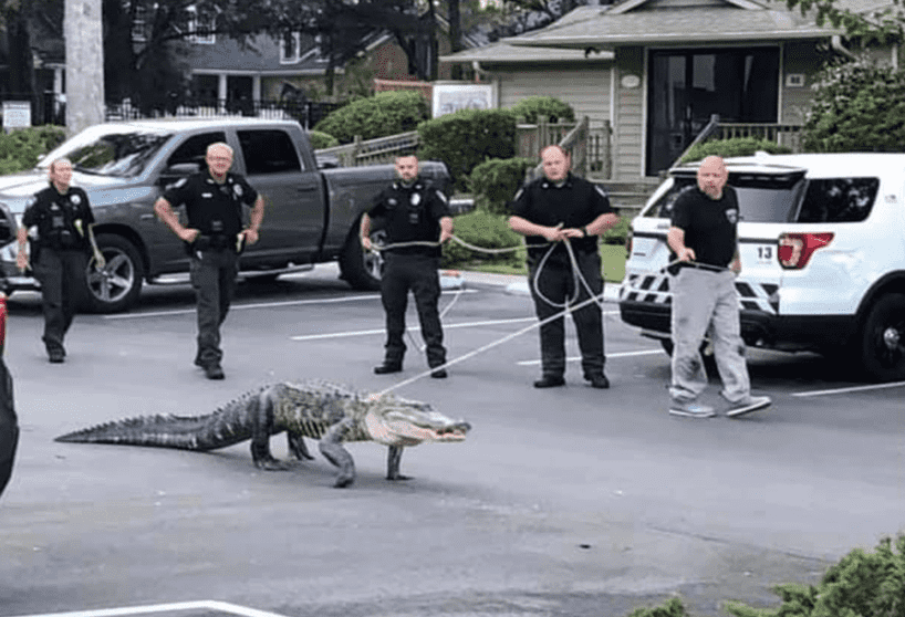 تفاجأ مقيم في إحدى ضواحي ميسوري سيتي بولاية تكساس، لدى عودته إلى منزله، بتمساح عملاق، استغرق الإمساك به ثلاث ساعات.
