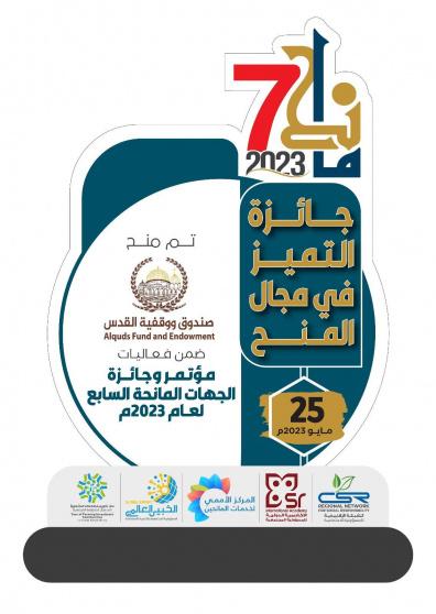 فاز صندوق ووقفية القدس بجائزة التميز في مجال المنح لعام 2023 حيث جرت مراسم التكريم خلال مؤتمر وجائزة الجهات المانحة السابع والذي عقد بدولة الكويت بتنظيم من الشبكة الإقليمية للمسؤولية الاجتماع والمعهد العربي للتخطيط والمركز الاممي لخدمات المانحين تحت شعار " أولويات الجهات المانحة في مواجهة التحديات الوطنية والدولية لتعزيز استدامة الأثر وتجويد المخرجات"