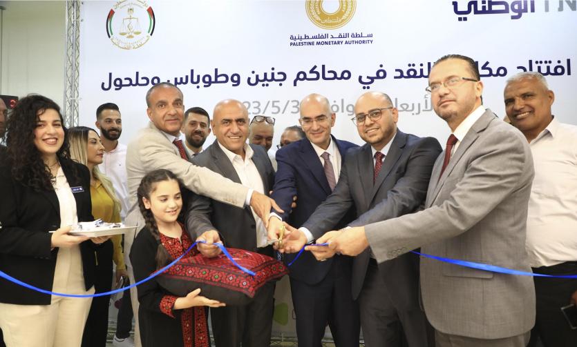 تحت رعاية سلطة النقد الفلسطينية، افتتح البنك الوطني ومجلس القضاء الأعلى اليوم 3 مكاتب نقد في محاكم جنين، وطوباس، وحلحول بشكل متزامن بحضور محافظ محافظة جنين اللواء أكرم رجوب، ونائب رئيس الغرفة التجارية والصناعية والزراعية في جنين السيد مصطفى القنيري، ورئيس قسم حماية المستهلك في سلطة النقد الفلسطينية السيد نضال ملحم، بالإضافة إلى القائم بأعمال مدير عام الشؤون المالية والإدارية في مجلس القضاء الأعلى السيد شريف القواسمي، ورئيس محكمة جنين القاضي أحمد حنون، والرئيس التنفيذي للبنك الوطني سلامة خليل. وفي طوباس، جرى الافتتاح بحضور محافظ محافظة طوباس والأغوار الشمالية السيد يونس عاصي، ورئيس بلدية طوباس السيد حسام دراغمة، ورئيس الغرفة التجارية في طوباس السيد ثائر صوافتة، ورئيس محكمة صلح طوباس القاضي حازم امعالي، ومدير منطقة فروع الشمال في البنك الوطني زاهر براهمة. أما مكتب محكمة حلحول فجرى افتتاحه بحضور مساعد محافظ الخليل لشؤون شمال الخليل السيد جميل رشدي، ورئيس غرفه تجارة وصناعة شمال الخليل السيد محمد علان، ومدير شرطه حلحول العقيد نائل بدارين، ورئيس بلدية حلحول السيد جهاد أبو عصبة، ورئيس محكمة حلحول القاضي محمد الهشلمون، ومدير منطقة فروع الجنوب في البنك الوطني رائد نصر الله.