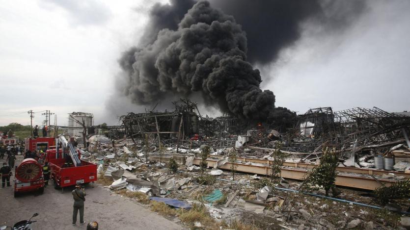وتصاعد الدخان فوق المصنع بعد الانفجار.