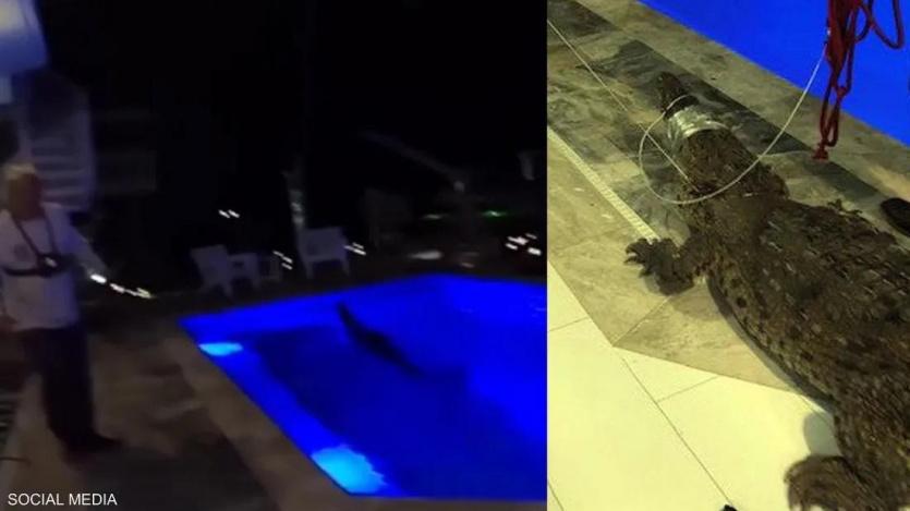 تفاجأت عائلة في ولاية فلوريدا الأميركية مؤخرا، بـ تمساح عملاق في حوض السباحة الخاص بهم.