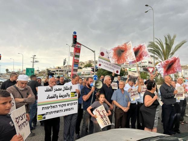 كما هتفوا ضد جرائم القتل وتقاعس الشرطة الإسرائيلية، وطالبوا بكبح جماح الظاهرة التي باتت تهدد مجتمعا بأكمله وتوفير الأمن والأمان للمواطنين الفلسطينيين العرب.