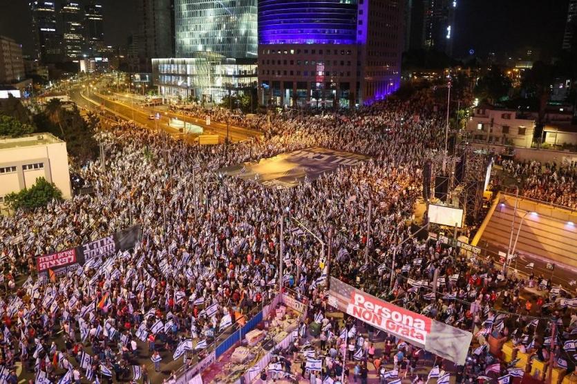 تجددت، مساء السبت، التظاهرات الاحتجاجية ضد حكومة بنيامين نتنياهو وخطتها لإضعاف جهاز القضاء، للأسبوع الخامس والعشرين على التوالي.