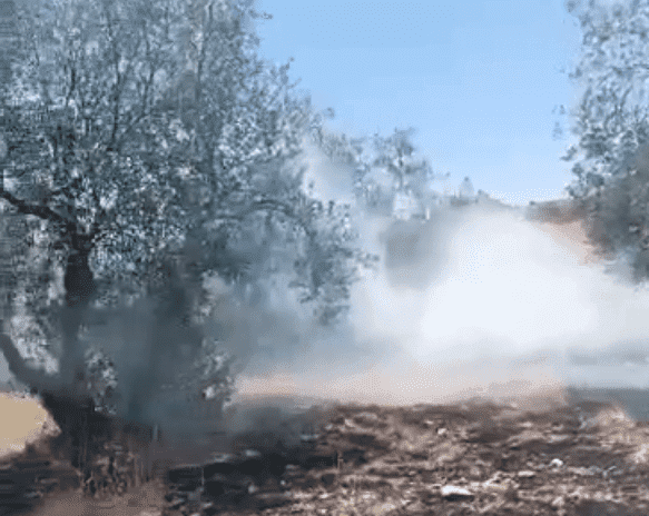 بالفيديو: مستوطنون يحرقون محاصيل زراعية بمسافر يطا