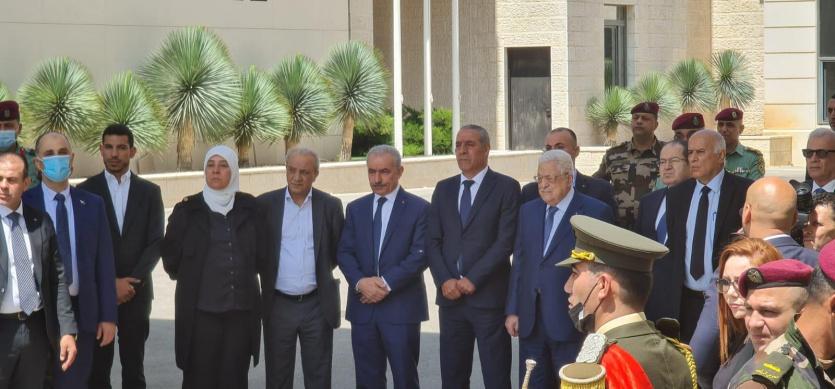 وألقى الرئيس عباس، نظرة الوداع الأخيرة على جثمان المناضل الوطني قدري أبو بكر، ووضع على نعشه إكليلا من الزهور.