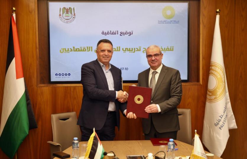 وقعت سلطة النقد ونقابة الصحفيين الفلسطينيين، اليوم بمقر سلطة النقد، اتفاقية لتنفيذ برنامج تدريبي خاص بالصحفيين الاقتصاديين.