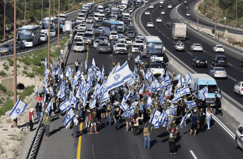 غداة المصادقة بالقراءة الأولى على مشروع قانون تقليص حجة المعقولية، الذي يرمي الى الحد من صلاحيات المحكمة العليا، تطلق الجهات المعارضة للتغييرات في جهاز القضاء اليوم فعاليات احتجاجية واسعة النطاق في معظم ارجاء البلاد في نشاط اطلقت عليه "يوم الشلل القومي" الذي يصفه المنظمون بأنه غير مسبوق حتى الآن.