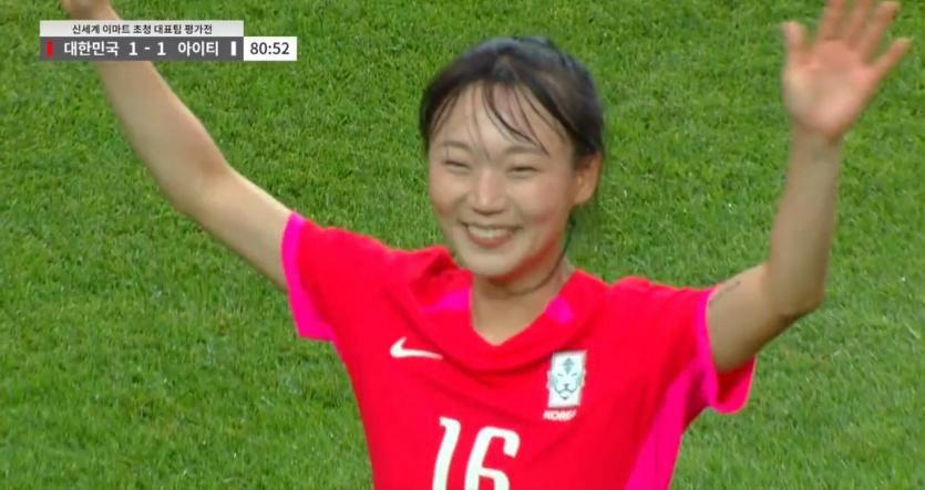 تصدر مشهد قيام لاعبة كرة قدم في المنتخب الكوري الجنوبي، بتسجيل هدف جميل في شباك منتخب هايتي، وسائل التواصل الاجتماعي بسبب ردة فعل اللاعبة الشابة على الهدف الجميل.