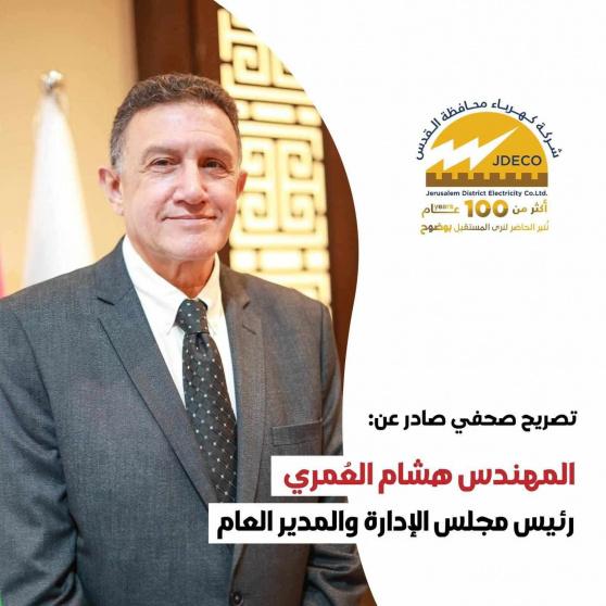 العُمري: نجحنا في تنفيذ معظم بنود الخطة الخمسية لـ"كهرباء القدس"
