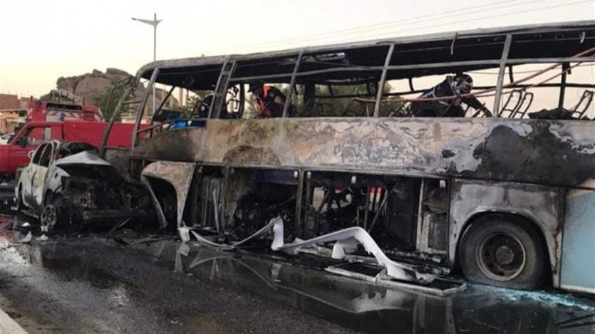 ووقع الحادث بين حافلة لنقل المسافرين وسيارة "بيك أب" معبأة بالوقود.