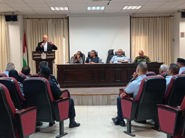 جاء ذلك خلال جولة قام بها المفوض السياسي العام اليوم الثلاثاء، ووفداً من هيئة التوجيه السياسي والوطني الى محافظة نابلس، التقى خلالها في دار المحافظة، مدراء الأجهزة الأمنية، وألقى محاضرة لمنتسبي ومدراء ونواب الادارات بمراكز شرطة محافظة نابلس، مختتماً جولته بلقاء كادر مديرية التوجيه السياسي والوطني بمحافظة نابلس .