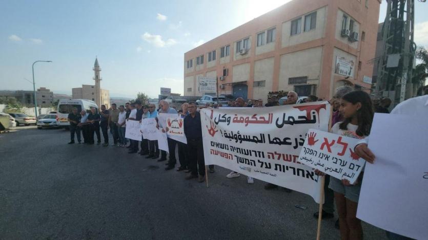 ورفع المشاركون في التظاهرة لافتات حملت الحكومة الإسرائيلية مسؤولية استفحال العنف والجريمة في أراضي الـ48، كما رددوا هتافات ضد تقاعس الشرطة الإسرائيلية واستفحال الجريمة.