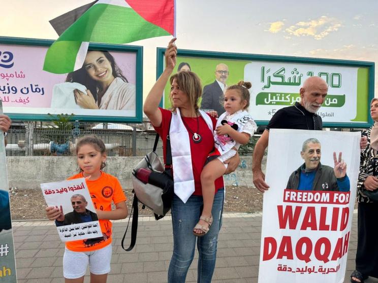 ورفع المشاركون في الوقفة صور الأسير وليد دقة ولافتات مطالبة بإطلاق سراحه، إذ كتب على بعض منها "الحرية لوليد"، "وليد بحاجة للعائلة والعلاج"، "حرية وليد مطلبنا"، "أنقذوا وليد دقة".