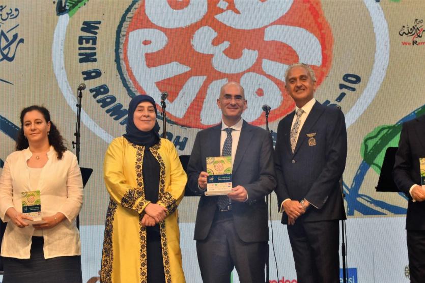 واستلم الدرع التقديري عن البنك الوطني الرئيس التنفيذي سلامة خليل، الذي أعرب عن فخره بمستوى تنظيم المهرجان والعروض المقدمة ومساهمته في تعزيز الوحدة الوطنية بمشاركة فرق فلسطينية من الداخل والمهجر، مؤكدا على أهمية الثقافة والفنون في ترسيخ الهوية الفلسطينية والحفاظ عليها. وتوجه خليل بالشكر لبلدية رام الله على جهودها في إخراج المهرجان بهذا المستوى العالمي.
