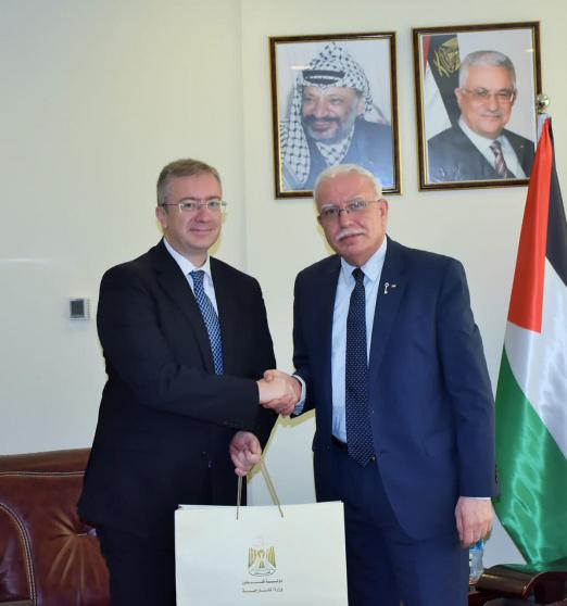 ودع وزير الخارجية والمغتربين رياض المالكي، اليوم الأربعاء، القنصل العام اليوناني المعتمد لدى دولة فلسطين إيفانجيلوس فليوراس، لمناسبة انتهاء مهامه الرسمية لدى دولة فلسطين.
