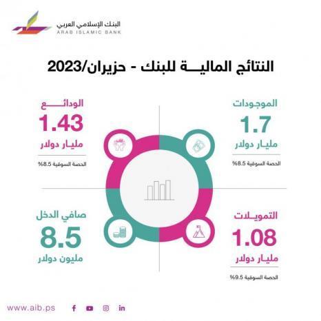 افصح البنك الإسلامي العربي عن بياناته المالية للفترة المنتهية بتاريخ 30 حزيران 2023 حيث حقق أرباحاً صافية بعد الضريبة بلغت قيمتها حوالي 8.5 مليون دولار، مقارنة بأرباح بلغت حوالي 7.4 مليون دولار في 30 حزيران 2022، محققاً بذلك نمواً قدره 16%.
