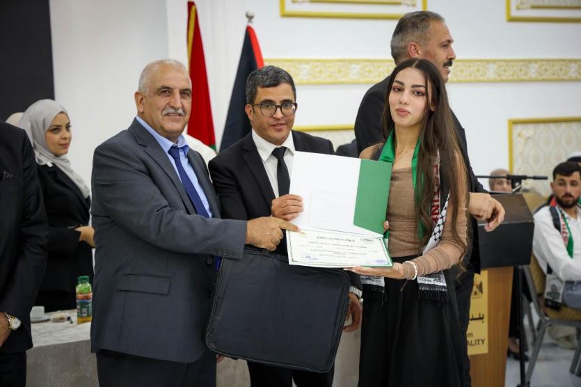 وفي نهاية الحفل قدمت وكالة بيت مال القدس الشريف للطلبة الاوائل 45 جهاز حاسوب نقال، وشهادات تقديرية.