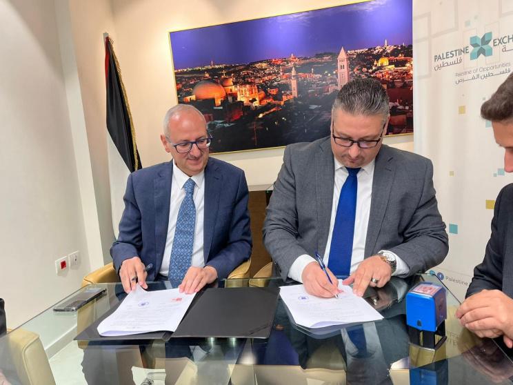 وقّع المدير العام لبورصة فلسطين، نهاد كمال، والمدير العام لشركة "الاعتماد المالي الاستثماري للوساطة المالية"، سامي شريم، اتفاقية "العضوية"، اليوم في مقرّ بورصة فلسطين.