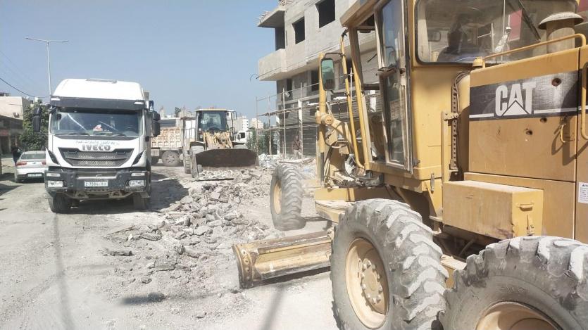 بدء إزالة آثار عدوان الاحتلال على مخيم نور شمس
