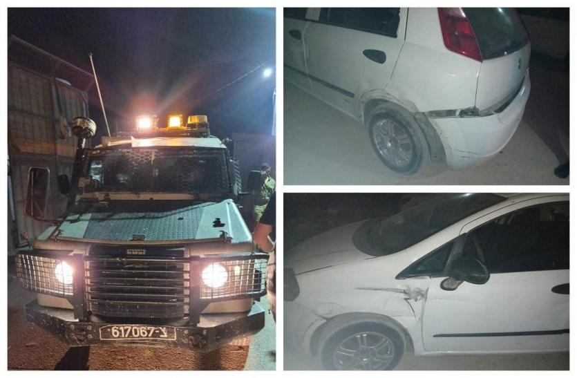 وذكر شهود عيان، ان مصفحات قوات الاحتلال العسكرية صدمت بشكل متعمد مركبات المواطنين المتوقفة على جانب الطريق في منطقة قبة جانب بالخليل، وألحقت أضرارا بها.