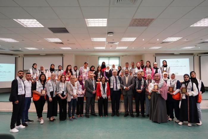 وأعرب د. شهوان عن سعادته بما بذله الطلبة من جهود لخدمة المواطنين الفلسطينيين، وقال: "لقاؤُنا اليوم ما هو إلا تأكيدٌ على إدراك الجامعة للدور المنوطِ بها، إذ تدركُ أن عملَها لا يقتصرُ على حدودها الجغرافية فقط، بل تقدم نفسها رافدًا مهمًّا لعملية التنمية على المستوى الوطني، وذلك عبر ما تقدمه من برامج تعليميةٍ وبحثيةٍ وتدريبيةٍ متخصصةٍ في شتى الحقولِ العلمية والمعرفية."