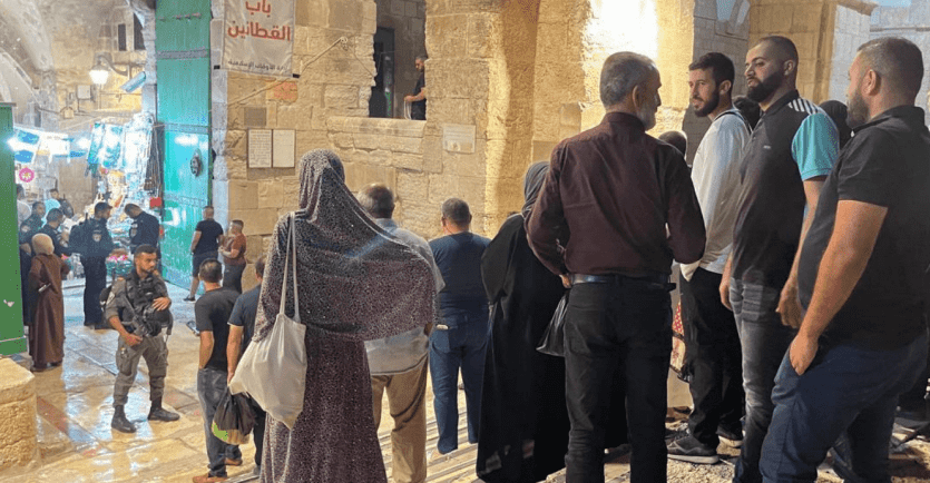 وأفادت مصادر محلية بأن قوات الاحتلال الإسرائيلي المتواجدة عند باب القطانين، منعت المصّلين من الخروج من المسجد، بذريعة تأمين الحماية للمستوطنين وتمكينهم من أداء طقوسهم التلمودية بشكل علني.