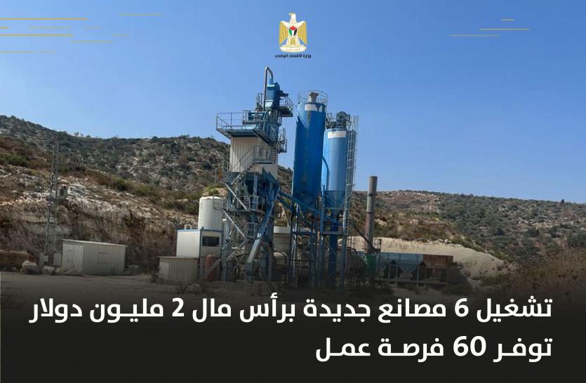وتوقعت وزارة الاقتصاد في بيان لها، أن توفر المصانع المشغلة أكثر من 60 فرصة عمل في محافظات الخليل، رام الله والبيرة، قلقيلية ، نابلس ، جنين ، القدس .