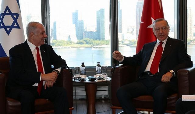 والثلاثاء الماضي، اجتمع إردوغان بنتنياهو، وأفادت الرئاسة التركية بأنه بحث معه قضايا دولية وإقليمية، إضافة للعلاقات السياسية والاقتصادية بين الطرفين، وآخر التطورات المتعلقة بالصراع الفلسطيني الإسرائيلي.