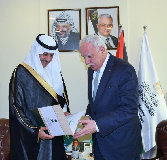 تسلّم وزير الخارجية والمغتربين رياض المالكي، اليوم الثلاثاء، في مقر الوزارة، نسخة من أوراق اعتماد سفير المملكة العربية السعودية الشقيقة نايف السديري، سفيرا مفوضا، وفوق العادة، وقنصلاً عاماً في مدينة القدس غير مقيم لدى دولة فلسطين.