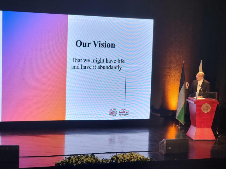 وأضاف شتيوي: "إذا كان هذا اليوم هو حقا يوم الأرض والشعب والثقافة، فلا أسعد اليوم من إدارة وكادر وطلبة جامعة دار الكلمة رواد الفن والثقافة في فلسطين، فلهؤلاء كل الاحترام والتقدير، وعندما ترقص الثقافة بين أروقة الحكمة، ويتسارع الفن على خطى الالهام، رسما للحياة بألوان الفن والثقافة يكون مثل هذا المؤتمر الهام، بين يدينا مهمة المحافظة على هذا التراث وتطويره، لنبني مستقبلا يتسم بالازدهار والتفاعل الإيجابي، فلنعمل معا لنكون أبناء الأرض وحراس الثقافة، ليس فقط لليوم، بل للأجيال القادمة، نفتخر بجامعة دار الكلمة الجامعة التخصصية الأولى في فلسطين ونؤكد تكامل دورهم مع توجهات الحكومة في تعزيز روايتنا الوطنية، ونتقدم بخالص الشكر والتقدير لجامعة دار الكلمة على جهودها الرائعة في تنظيم هذا المؤتمر الهام، الذي يعزز التواصل والفهم المتبادل بين الافراد والمجتمع. إن لإسهاماتهم دور عظيم في بناء جسور التفاهم وتعزيز قيم التعاون. شكرا لتفانيكم وتفردكم في تنظيم فعاليات تعزيز التواصل واثراء المشهد الثقافي والاجتماعي."