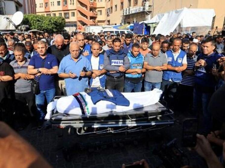 وجاء في بيان صادر عن لجنة الحريات التابعة للنقابة، اليوم الجمعة، أن طائرات الاحتلال استهدفت أمس الخميس منزل الصحفي المصور أحمد ماهر خير الدين في مشروع بيت لاهيا شمال قطاع غزة، كما استشهد ابن عمه الصحفي محمد خير الدين، وصباح اليوم استشهد المختص بصيانة الكاميرات الصحفية عبد الله حماد نتيجة القصف على منزله في دير البلح.