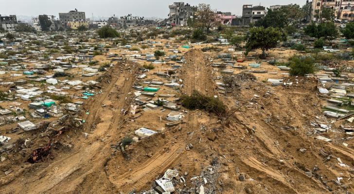 دنست قوات الاحتلال الإسرائيلي، مقابر، خلال عملياتها البرية في خان يونس.