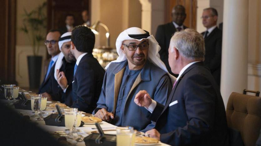 وقال بيان صادر عن الديوان الملكي الأردني نقلته "بترا"، ان الملك عبد الله، والشيخ محمد بن زايد، أكدا خلال لقائهما في قصر بسمان في عمان الإثنين، على "ضرورة تكثيف العمل لوقف إطلاق النار في غزة، وحماية المدنيين، وضمان وصول المساعدات الإنسانية للأهل في القطاع بشكل كاف ودائم"، محذرين من "تداعيات استمرار الحرب على غزة، وتفاقم الأوضاع الإنسانية الكارثية".