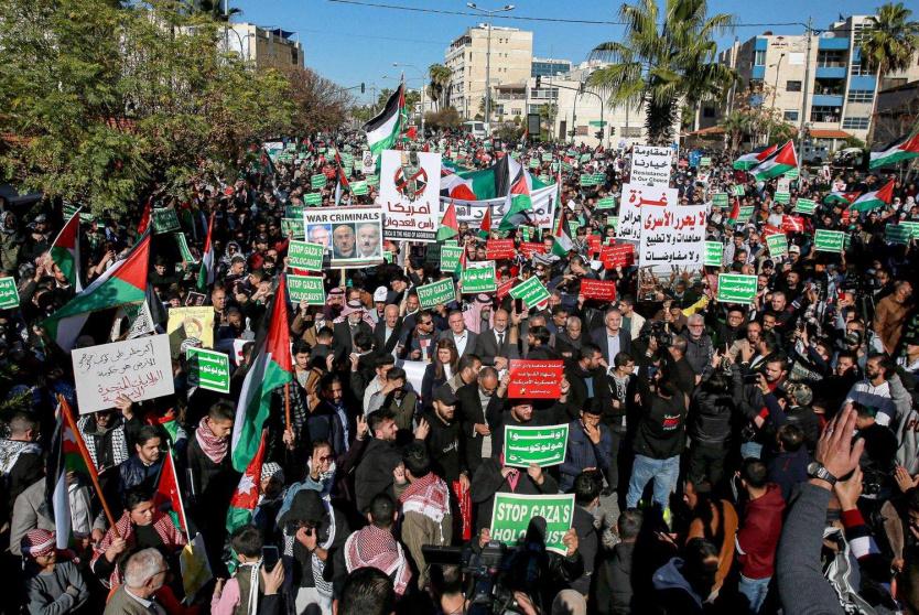 شارك آلاف الأردنيين بمسيرات ووقفات في العاصمة الأردنية عمان ومختلف محافظات المملكة، للجمعة الـ20 على التوالي، دعما وإسنادا لفلسطين، وتنديدا بالعدوان الإسرائيلي المستمر على قطاع غزة لليوم الـ133.