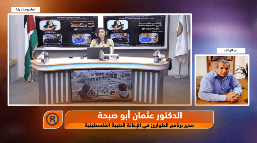 بدوره، تحدث الدكتور عثمان أبو صبحة مدير برنامج الطوارئ في الإغاثة الطبية الفلسطينية، عن آليات توفير الاحتياجات الأساسية الإنسانية للنازحين في قطاع غزة في ظل ما يجري خلال حرب الإبادة المستمرة.